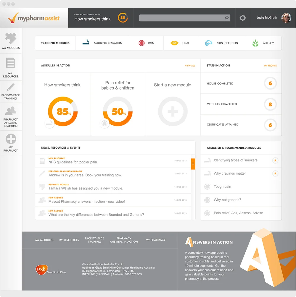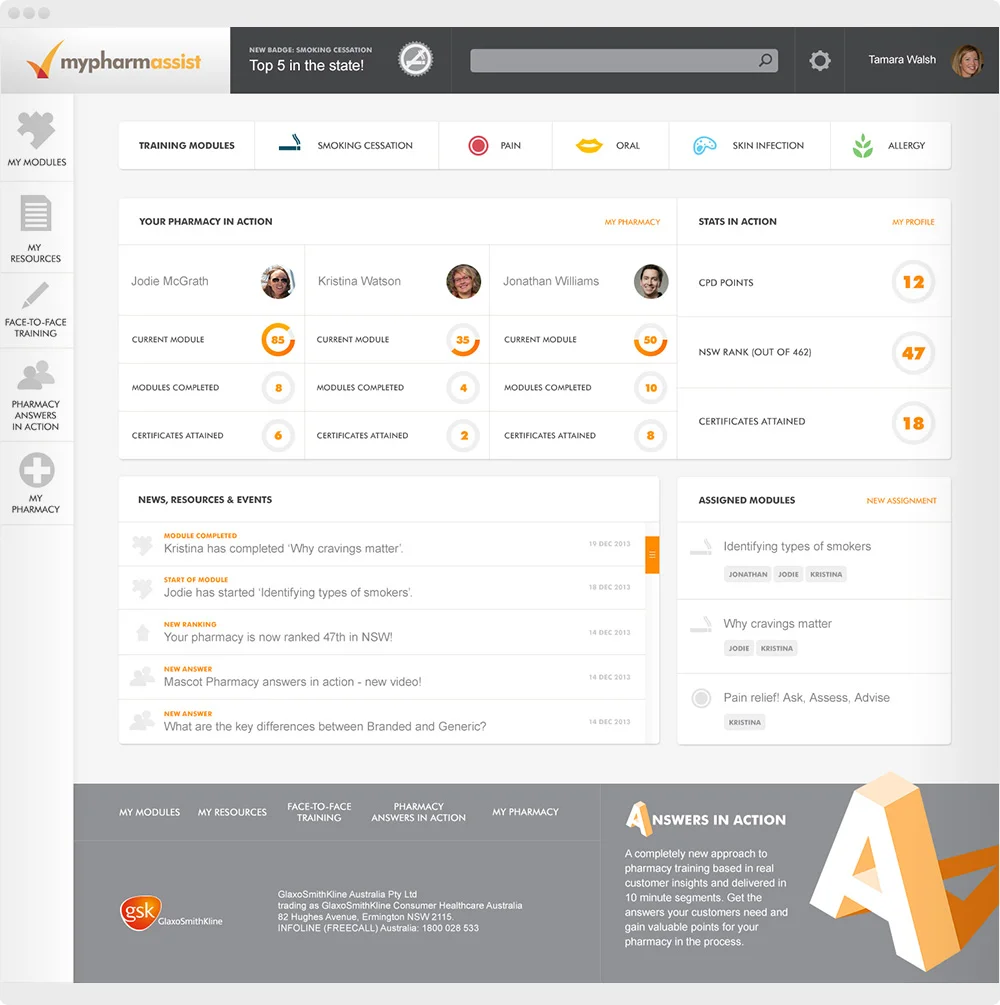 Part of the GSK Academy; MyPharmAssist is an online community where Pharmacy Assistants can stay up to date, learn and connect with other PAs. Online training modules, resources and information are delivered in a clean and responsive design.